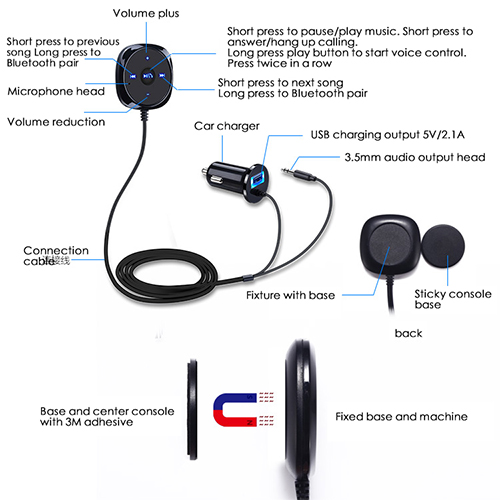FM Transmitter bluetooth met kabel en USB oplader